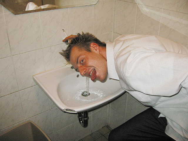 Man beachte auch das rausgebissene Waschbeckenstück!